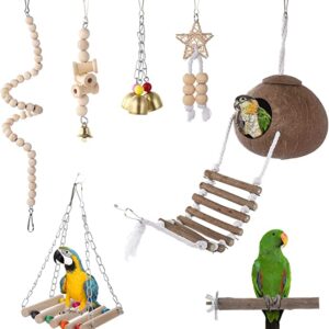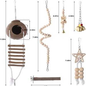 Bird Parrot Toys,7 Pack Parrots Chewing Natural Wood Coconut Bird House with Ladder